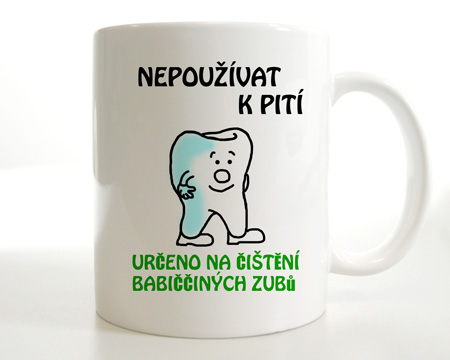 Originální bílý keramický hrnek Babiččine zuby.
